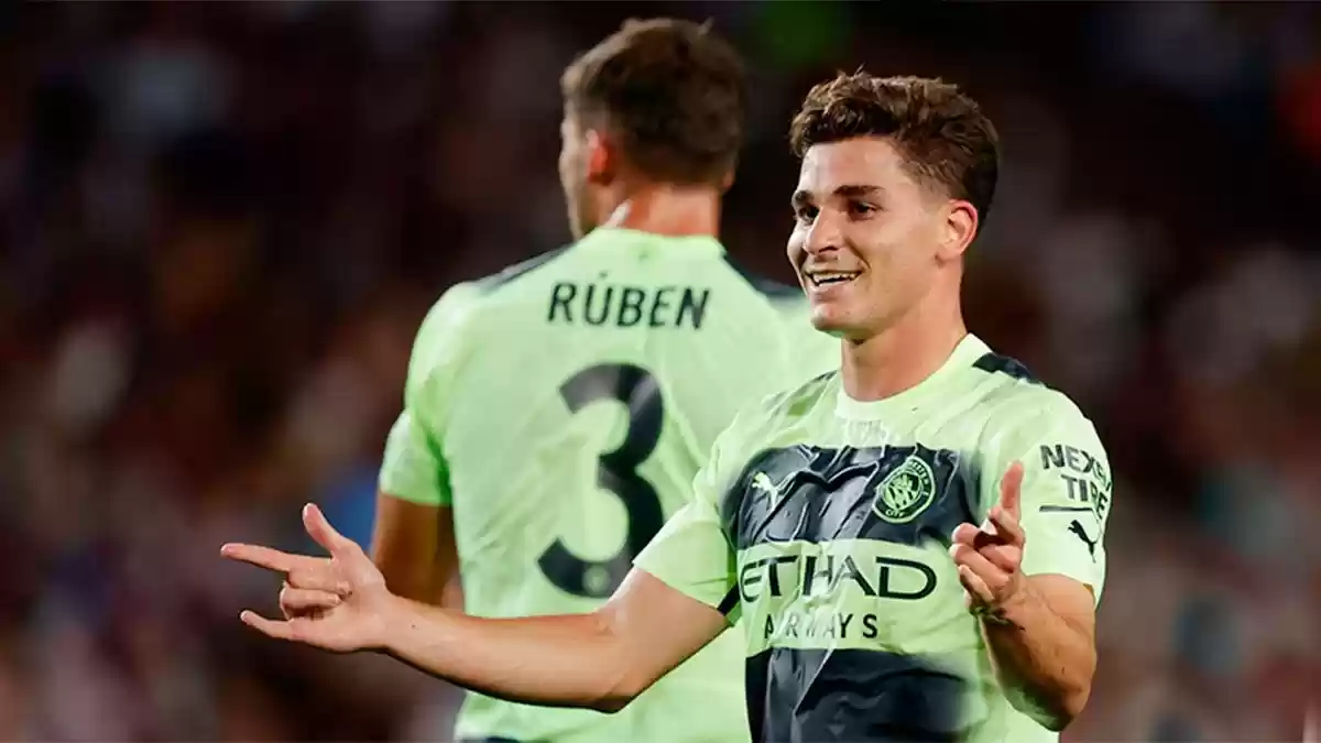 Video | Julián Álvarez marcó en el empate del Manchester City con Barcelona