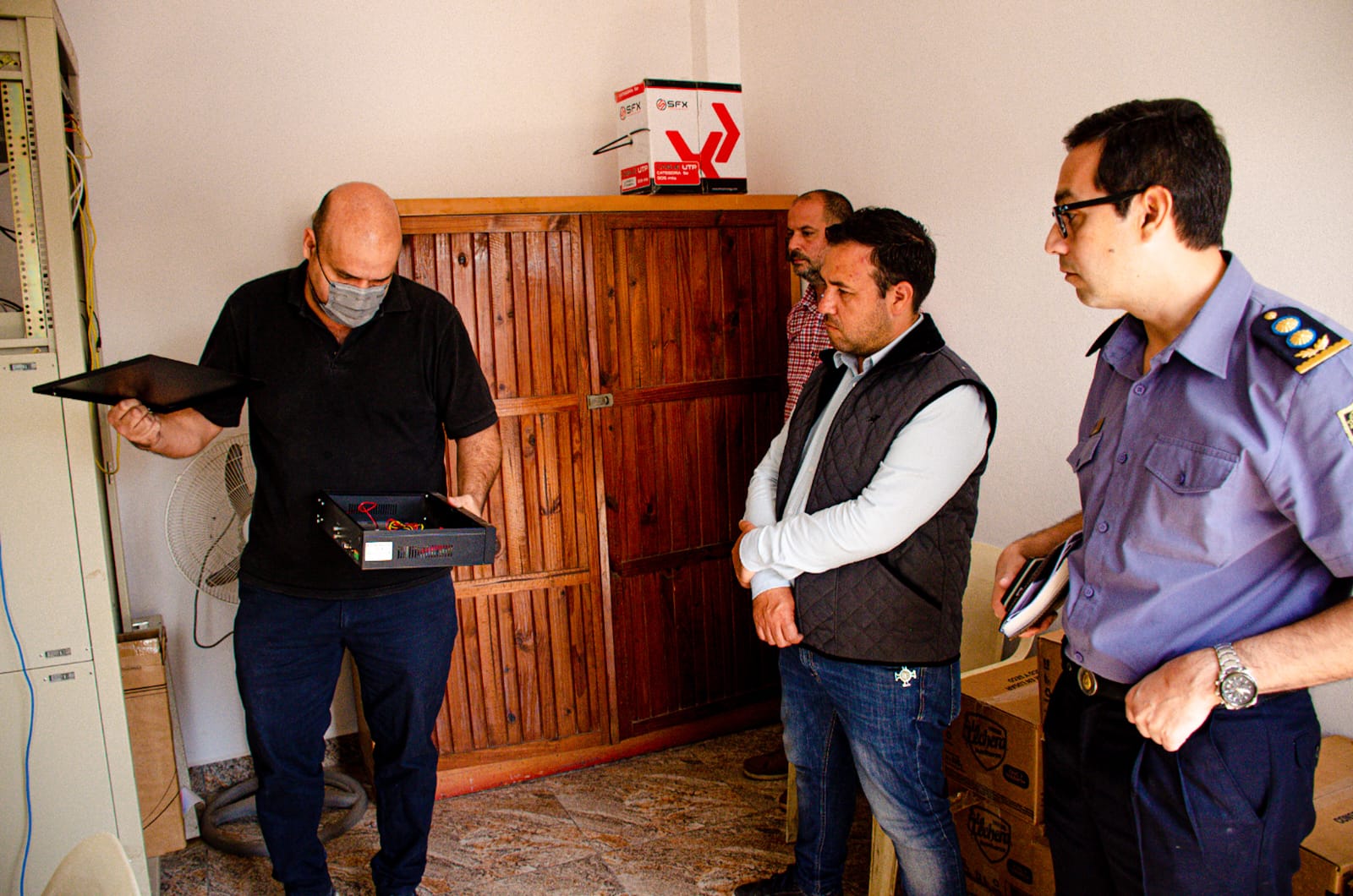 En representación de la Unidad Regional VII, el Cabo Primero Leonardo Morlio, y de la Comisaría Primera, el Subcomisario Jorge Domínguez; y junto al mandatario comunal, el Secretario de Gobierno Municipal, Orlando Moneta, y el Director de Obras y Servicios Públicos, Federico Gek.
