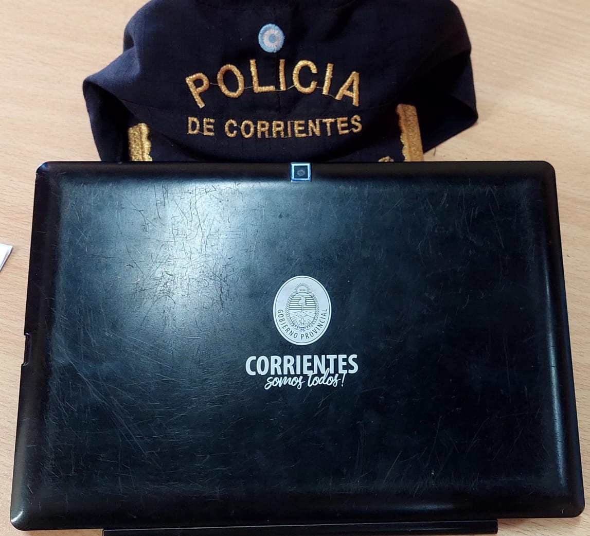 Ante la consulta policial, uno de los jóvenes dijo que estaban intentando vender una computadora portátil. Al revisar el equipo, los agentes notaron que se trataba de una notebook entregada por el Gobierno Provincial, con la leyenda “Corrientes Somos Todos”, sin que pudieran acreditar su tenencia ni su origen.